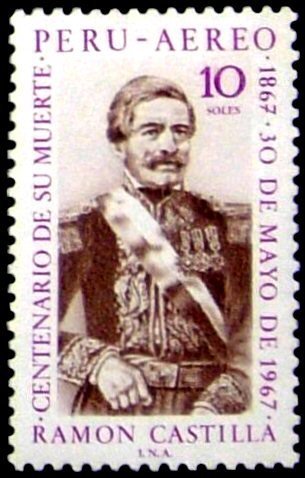 Visibility: public Image owner: none airmail 5/30/1969 10s vio&dkbrn issue=100th Anniversary of the Death of President Ramon Castilla unwmk Crops No visible images cropped from this one. Measurements Resolution is unknown. Source Source name: Colnect File URL: http://i.colnect.net/images/b/1594/838/General-Ramon-Castilla.jpg Uploaded September 5, 2014, 6:41 pm by Stan Shebs |