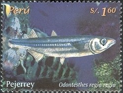 Visibility: public Image owner: none postage 3/3/2004 1.60s multi dt=sea fishes of Peru d=Odontesthes regia regia unwmk perf=13.75 Crops No visible images cropped from this one. Measurements Resolution is unknown. Source Source name: Colnect File URL: http://i.colnect.net/images/b/1557/476/Sea-Silverside-Odontesthes-regia-regia.jpg Uploaded September 5, 2014, 6:44 pm by Stan Shebs |