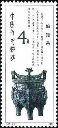 Visibility: public Image owner: none postage 12/25/1982 4f multi dt=Bronzes of Western Zhou Dynasty unwmk perf=11 Crops No visible images cropped from this one. Measurements Resolution is unknown. Source Source name: Colnect File URL: http://i.colnect.net/b/713/355/Bronze-three-legged-cooking-pot.jpg Uploaded September 5, 2014, 11:00 pm by Stan Shebs |