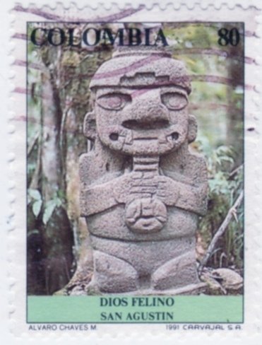 Visibility: public Image owner: none postage 8/24/1991 80p multi issue=Pre-Columbian Art unwmk perf=12 Crops No visible images cropped from this one. Measurements Resolution is unknown. Source Source name: Colnect File URL: http://i.colnect.net/b/1172/262/Statue-of-Feline-God---San-Agustin.jpg Uploaded September 6, 2014, 3:14 pm by Stan Shebs |
