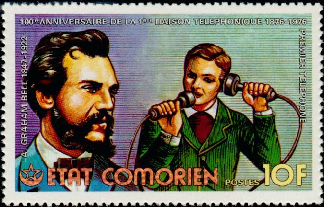 Visibility: public Image owner: none postage 7/1/1976 10fr multi issue=100th Anniversary of the Telephone d=Alexander Graham Bell (1976 Comoro Islands) unwmk perf=13.5 Crops No visible images cropped from this one. Measurements Resolution is unknown. Source Source name: Colnect File URL: http://i.colnect.net/b/547/836/Graham-Bell.jpg Uploaded September 6, 2014, 3:15 pm by Stan Shebs |