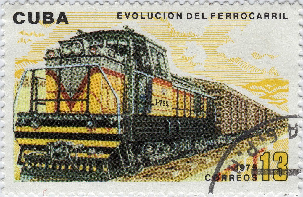 Visibility: public Image owner: none postage 10/28/1975 13c multi issue=Evolution of the Railways dt=locomotives (1975 Cuba) d=Diesel Locomotive DVM-9 unwmk perf=12.5 Crops No visible images cropped from this one. Measurements Resolution is unknown. Source Source name: Colnect File URL: http://i.colnect.net/images/b/1105/727/Locomotive.jpg Uploaded September 6, 2014, 5:02 pm by Stan Shebs |