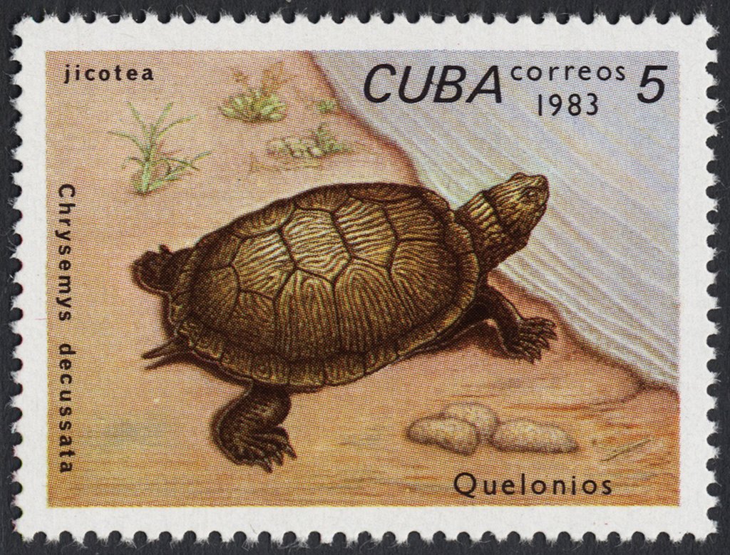 Visibility: public Image owner: none postage 11/15/1983 5c multi dt=turtles (1983) d=Chrysemys decussata unwmk perf=12.75 Crops No visible images cropped from this one. Measurements Resolution is unknown. Source Source name: Colnect File URL: http://i.colnect.net/b/852/468/Cuban-Slider-Chrysemys-decussata.jpg Uploaded September 6, 2014, 5:23 pm by Stan Shebs |