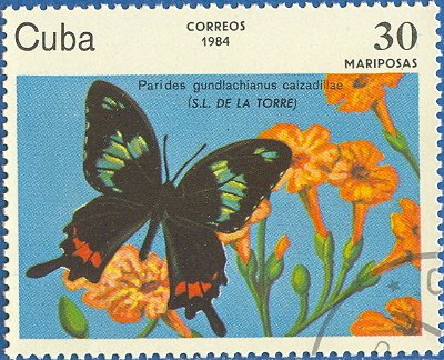 Visibility: public Image owner: none postage 1/31/1984 30c multi dt=butterflies (1984 Cuba) d=Parides gundlachianus calzadillae unwmk perf=12.75x12.5 Crops No visible images cropped from this one. Measurements Resolution is unknown. Source Source name: Colnect File URL: http://i.colnect.net/b/679/209/Cuban-Cattleheart-Parides-gundlachianus-ssp-calzadillae.jpg Uploaded September 6, 2014, 5:24 pm by Stan Shebs |