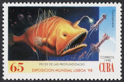 Visibility: public Image owner: none postage 5/22/1998 65c multi dt=deep sea fishes (1998) d=Caulophryne sp. unwmk perf=12.5x12.25 Crops No visible images cropped from this one. Measurements Resolution is unknown. Source Source name: Colnect File URL: http://i.colnect.net/images/b/852/918/Fanfin-Anglerfish-Caulophryne-sp.jpg Uploaded September 6, 2014, 5:57 pm by Stan Shebs |