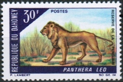 Visibility: public Image owner: none postage 3/18/1968 30fr multi issue=Pendjari Game Reserve d=Panthera leo (1968) unwmk Crops No visible images cropped from this one. Measurements Resolution is unknown. Source Source name: Colnect File URL: http://i.colnect.net/b/1529/730/Lion-Panthera-leo.jpg Uploaded September 6, 2014, 6:11 pm by Stan Shebs |