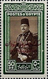Visibility: public Image owner: none postage 1/17/1952 500m grn&sep issue=King of Egypt and the Sudan d=Farouk redrawn ovpt=King...(arabic) oc=blk on=500m-grn&sep wmk=triple crescent & star Crops No visible images cropped from this one. Measurements Resolution is unknown. Source Source name: Colnect File URL: http://i.colnect.net/images/b/1281/731/King-Farouk-with-overprint.jpg Uploaded September 6, 2014, 6:28 pm by Stan Shebs |