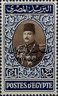 Visibility: public Image owner: none postage 1/17/1952 1lb bl&brn issue=King of Egypt and the Sudan d=King Farouk (1939) ovpt=King...(arabic) oc=blk on=1lb-bl&brn wmk=triple crescent & star Crops No visible images cropped from this one. Measurements Resolution is unknown. Source Source name: Colnect File URL: http://i.colnect.net/images/b/1281/746/King-Farouk-with-overprint.jpg Uploaded September 6, 2014, 6:28 pm by Stan Shebs |