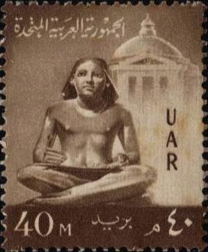 Visibility: public Image owner: none postage 11/30/1959 40m issue=1959 d=Scribe statue wmk=UAR Crops No visible images cropped from this one. Measurements Resolution is unknown. Source Source name: Colnect File URL: http://i.colnect.net/b/1308/691/Scribe-statue.jpg Uploaded September 6, 2014, 6:37 pm by Stan Shebs |