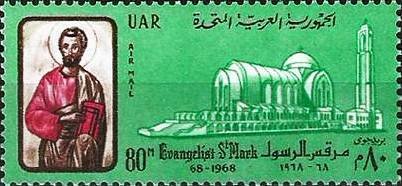Visibility: public Image owner: none airmail 6/25/1968 80m issue=1900th ann. of martyrdom of St. Mark d=St Mark & St Marks Cathedral in Cairo perf=11.5 Crops No visible images cropped from this one. Measurements Resolution is unknown. Source Source name: Colnect File URL: http://i.colnect.net/b/1319/668/St-Mark---St-Mark-s-Chatedral-in-Cairo.jpg Uploaded September 6, 2014, 6:38 pm by Stan Shebs |
