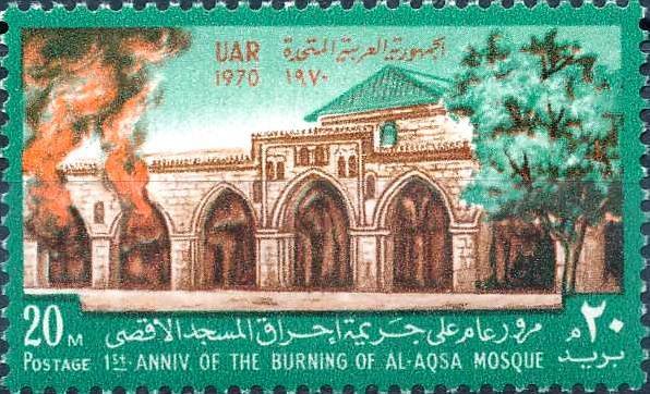 Visibility: public Image owner: none postage 8/21/1970 20m multi issue=1st Anniversary of burning of Al Aqsa Mosque d=Al Aqsa Mosque on fire wmk=arms mult perf=11.25 Crops No visible images cropped from this one. Measurements Resolution is unknown. Source Source name: Colnect File URL: http://i.colnect.net/b/1319/608/Al-Aqsa-Mosque-on-fire.jpg Uploaded September 6, 2014, 6:39 pm by Stan Shebs |