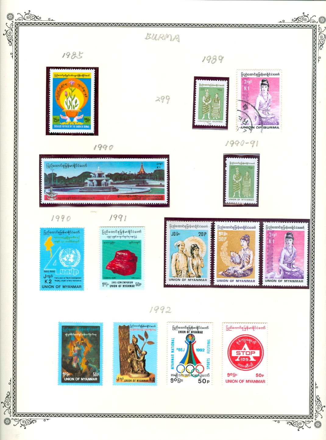 http://worldstampalbum.com/Doc/Burma/Postage/1985-92.jpg