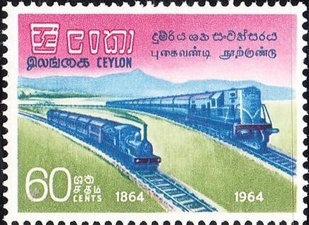 Visibility: public Image owner: none postage 12/21/1964 60c issue=railroad 100th var=Singhalese&English wmk=lotus & Sri mult perf=14 Crops No visible images cropped from this one. Measurements Resolution is unknown. Source Source name: Colnect File URL: http://i.colnect.net/b/1254/445/100-years-Railway-in-Ceylon.jpg Uploaded September 6, 2014, 6:46 pm by Stan Shebs |