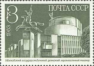Visibility: public Image owner: none postage 12/15/1983 3k multi dt=New Buildings in Moscow d=Children's Music Theatre, 1979 unwmk Crops No visible images cropped from this one. Measurements Resolution is unknown. Source Source name: Colnect File URL: http://i.colnect.net/b/659/341/Children-s-Music-Theatre-1979.jpg Uploaded September 6, 2014, 7:04 pm by Stan Shebs |