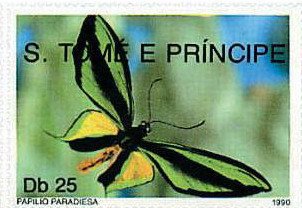 Visibility: public Image owner: none postage 11/2/1990 25d multi issue=butterflies 1990 dt=butterflies (1990 St. Thomas & Prince Islands) d=Papilio paradiesa unwmk Crops No visible images cropped from this one. Measurements Resolution is unknown. Source Source name: Colnect File URL: http://i.colnect.net/b/857/084/Paradise-Birdwing-Ornithoptera-paradisea.jpg Uploaded September 6, 2014, 7:19 pm by Stan Shebs |