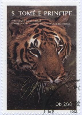 Visibility: public Image owner: none postage 6/6/1992 200db multi issue=United Nations Conference on Environment and Development, Rio de Janeiro d=Panthera tigris (1992 St. Thomas & Prince Islands) unwmk perf=13.75x14 Crops No visible images cropped from this one. Measurements Resolution is unknown. Source Source name: Colnect File URL: http://i.colnect.net/b/938/260/Tiger-Panthera-tigris.jpg Uploaded September 6, 2014, 7:19 pm by Stan Shebs |