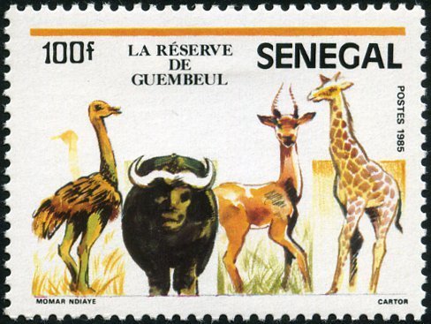 Visibility: public Image owner: none postage 12/4/1986 100fr multi dt=animals of Guembeul Nature Reserve unwmk perf=13.5 Crops No visible images cropped from this one. Measurements Resolution is unknown. Source Source name: Colnect File URL: http://i.colnect.net/images/b/1601/973/OstrichBuffaloWaterbuckGiraffe.jpg Uploaded September 6, 2014, 7:24 pm by Stan Shebs |