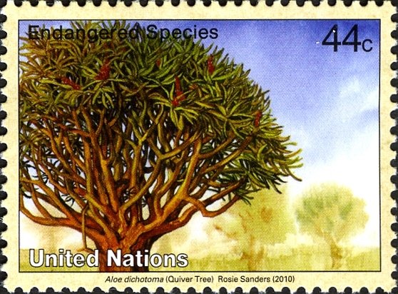 Visibility: public Image owner: none postage 4/15/2010 44c multi dt=endangered species - trees d=Aloe dichotoma unwmk Crops No visible images cropped from this one. Measurements Resolution is unknown. Source Source name: Colnect File URL: http://i.colnect.net/b/958/865/Quiver-Tree.jpg Uploaded September 6, 2014, 8:58 pm by Stan Shebs |