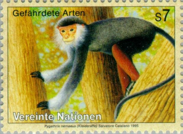 Visibility: public Image owner: none postage 3/24/1995 7s multi issue=Threatened Animals 1995 unwmk Crops No visible images cropped from this one. Measurements Resolution is unknown. Source Source name: Colnect File URL: http://i.colnect.net/b/139/019/Red-shanked-Douc-Pygathrix-nemaeus.jpg Uploaded September 6, 2014, 9:11 pm by Stan Shebs |