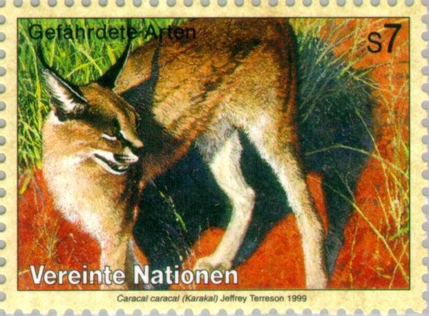 Visibility: public Image owner: none postage 4/22/1999 7s multi issue=Endangered Species 1999 unwmk perf=12.75x12.5 Crops No visible images cropped from this one. Measurements Resolution is unknown. Source Source name: Colnect File URL: http://i.colnect.net/b/139/158/Carakal-Caracal-caracal.jpg Uploaded September 6, 2014, 9:13 pm by Stan Shebs |