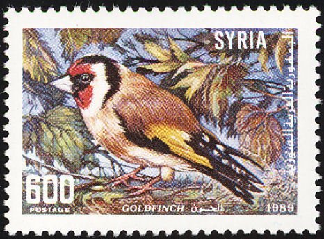 Visibility: public Image owner: none postage 3/21/1989 600p multi issue=Birds 1989 dt=birds (1989 Syria) d=Carduelis carduelis (1989) unwmk Crops No visible images cropped from this one. Measurements Resolution is unknown. Source Source name: Colnect File URL: http://i.colnect.net/b/1650/754/European-Goldfinch-Carduelis-carduelis.jpg Uploaded September 6, 2014, 9:30 pm by Stan Shebs |