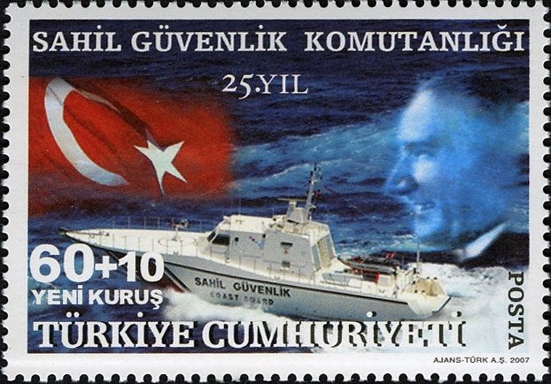Visibility: public Image owner: none postage 7/13/2007 0.60l multi issue=25th Anniversary of Turkish Coast Guard Command unwmk Crops No visible images cropped from this one. Measurements Resolution is unknown. Source Source name: Colnect File URL: http://i.colnect.net/b/948/103/Kemal-Ataturk-Coast-Guard-Boat-and-Flag.jpg Uploaded September 8, 2014, 1:40 pm by Stan Shebs |