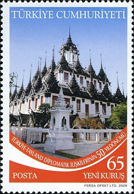 Visibility: public Image owner: none postage 5/12/2008 0.65l multi issue=50th Anniversary of Turkey - Thailand Diplomatic Relations d=Loha Prasat Iron Palace Wat Ratchanatdaram Bangkok unwmk Crops No visible images cropped from this one. Measurements Resolution is unknown. Source Source name: Colnect File URL: http://i.colnect.net/b/950/826/Loha-Prasat-Iron-Palace-Wat-Ratchanatdaram-Bangkok.jpg Uploaded September 8, 2014, 1:41 pm by Stan Shebs |
