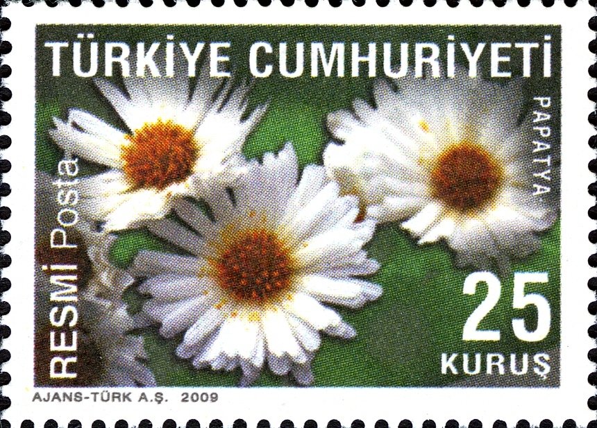 Visibility: public Image owner: none official 3/26/2009 0.25l multi issue=2009 official dt=flowers (2009 Turkey) d=daisy wmk=crescent & star over TC Crops No visible images cropped from this one. Measurements Resolution is unknown. Source Source name: Colnect File URL: http://i.colnect.net/b/1006/644/Daisy.jpg Uploaded September 8, 2014, 1:49 pm by Stan Shebs |