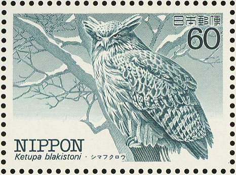 Visibility: public Image owner: none postage 12/10/1984 60y multi dt=endangered birds (1984) d=Blakiston's Fish Owl unwmk Crops No visible images cropped from this one. Measurements Resolution is unknown. Source Source name: Colnect File URL: http://i.colnect.net/images/b/608/836/Blakiston--s-Fish-Owl-Ketupa-blakistoni.jpg Uploaded September 8, 2014, 3:12 pm by Stan Shebs |