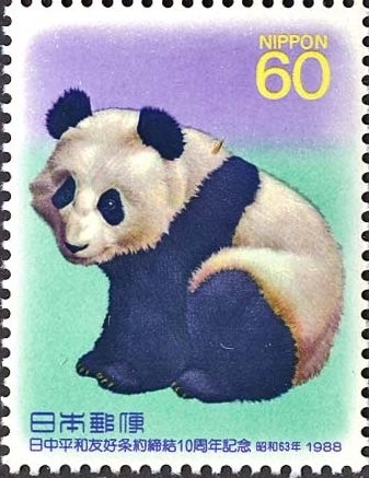 Visibility: public Image owner: none postage 8/12/1988 60y multi issue=10th Anniversary of Japanese-Chinese Treaty of Peace and Friendship d=Ton-ton (Giant Panda) unwmk perf=12.75x13 Crops No visible images cropped from this one. Measurements Resolution is unknown. Source Source name: Colnect File URL: http://i.colnect.net/b/1404/725/Giant-Panda-Ailuropoda-melanoleuca.jpg Uploaded September 8, 2014, 3:17 pm by Stan Shebs |