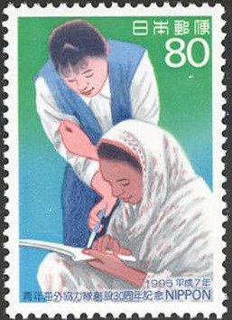 Visibility: public Image owner: none postage 4/20/1995 80y multi issue=30th Anniversary of Japanese Overseas Co-operation Volunteers Service d=Volunteer teaching Bangladeshi Woman unwmk perf=13.5 Crops No visible images cropped from this one. Measurements Resolution is unknown. Source Source name: Colnect File URL: http://i.colnect.net/b/974/725/30-Years-of-Japanese-Overseas-Cooperation-Volunteers-Service.jpg Uploaded September 8, 2014, 3:22 pm by Stan Shebs |