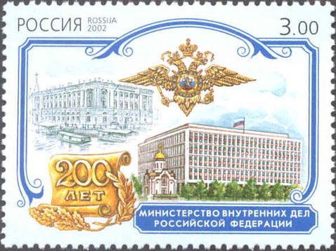 Visibility: public Image owner: none postage 9/2/2002 3.00r multi issue=200th Anniversary of Founding First Ministries in Russia d=The Ministry of Internal Affairs of the Russian Federation unwmk Crops No visible images cropped from this one. Measurements Resolution is unknown. Source Source name: Colnect File URL: http://i.colnect.net/b/1040/415/Ministry-of-Internal-Affairs.jpg Uploaded September 8, 2014, 4:18 pm by Stan Shebs |