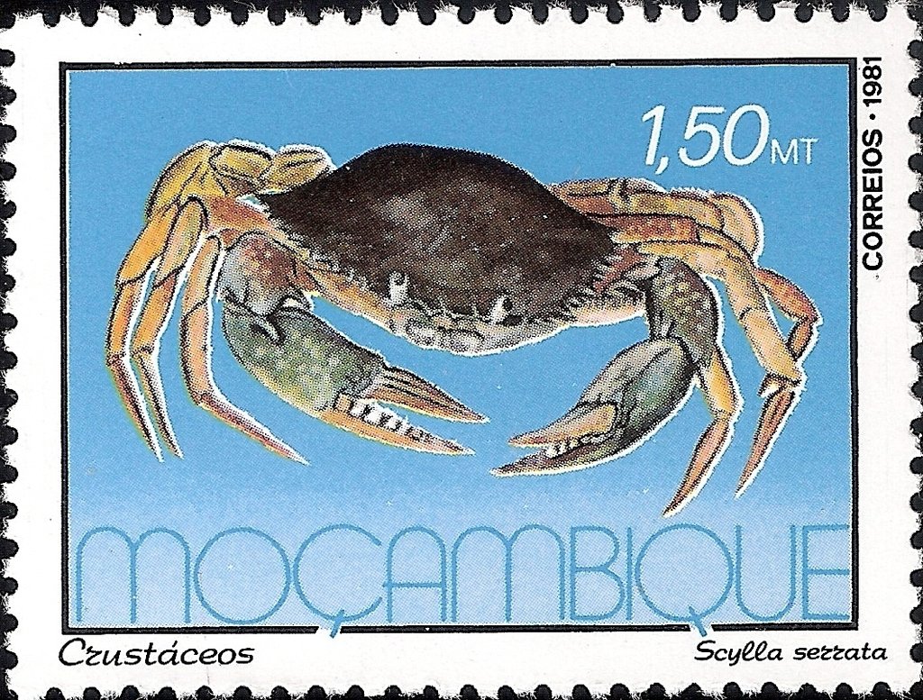 Visibility: public Image owner: none postage 12/6/1981 1.50mt multi dt=crustaceans (1981) d=Scylla serrata (1981) unwmk perf=11 Crops No visible images cropped from this one. Measurements Resolution is unknown. Source Source name: Colnect File URL: http://i.colnect.net/b/1116/893/Giant-Mud-Crab-Scylla-serrata.jpg Uploaded September 8, 2014, 4:44 pm by Stan Shebs |