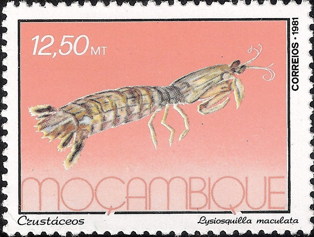 Visibility: public Image owner: none postage 12/6/1981 12.50mt multi dt=crustaceans (1981) d=Lysiosquilla maculata unwmk perf=11 Crops No visible images cropped from this one. Measurements Resolution is unknown. Source Source name: Colnect File URL: http://i.colnect.net/b/1116/911/Zebra-Mantis-Shrimp-Lysiosquilla-maculata.jpg Uploaded September 8, 2014, 4:44 pm by Stan Shebs |