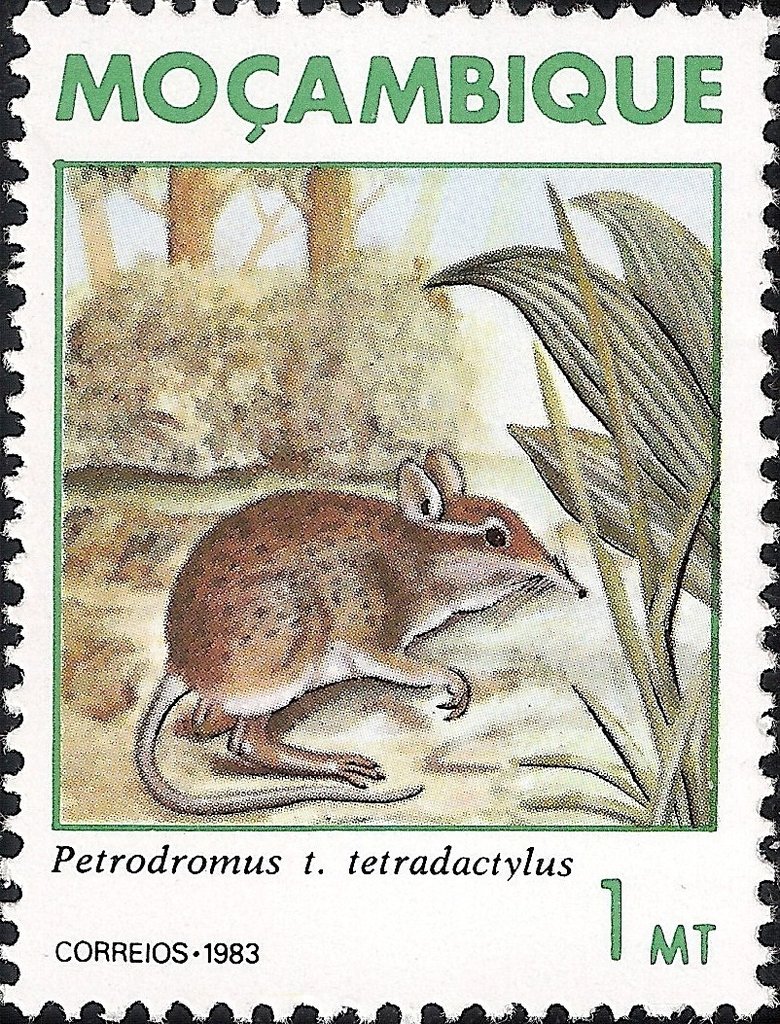 Visibility: public Image owner: none postage 5/30/1983 1mt multi dt=Mozambique mammals d=Petrodromus tetradactylus unwmk perf=11 Crops No visible images cropped from this one. Measurements Resolution is unknown. Source Source name: Colnect File URL: http://i.colnect.net/images/b/1117/350/Four-toed-Elephant-Shrew-Petrodromus-tetradactylus.jpg Uploaded September 8, 2014, 4:47 pm by Stan Shebs |