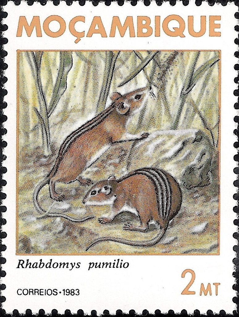 Visibility: public Image owner: none postage 5/30/1983 2mt multi dt=Mozambique mammals d=Rhabdomys pumilio unwmk perf=11 Crops No visible images cropped from this one. Measurements Resolution is unknown. Source Source name: Colnect File URL: http://i.colnect.net/images/b/1117/351/Striped-Mouse-Rhabdomys-pumilio.jpg Uploaded September 8, 2014, 4:47 pm by Stan Shebs |