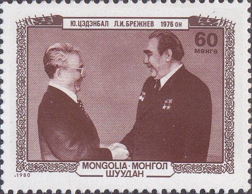 Visibility: public Image owner: none postage 9/17/1980 60m brnred dt=leaders d=Zedenbal with Brezhnev 1976 unwmk perf=11.5x12 Crops No visible images cropped from this one. Measurements Resolution is unknown. Source Source name: Colnect File URL: http://i.colnect.net/b/911/136/Yumjaagiin-Tsedenbal-1916-1991-with-Brezhnev-1976.jpg Uploaded September 8, 2014, 5:45 pm by Stan Shebs |