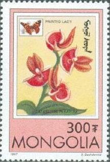 Visibility: public Image owner: none postage 12/5/1997 300t multi issue=Orchids 1997 dt=orchids (1997 Mongolia) d=Catasetum pileatum (1997) unwmk Crops No visible images cropped from this one. Measurements Resolution is unknown. Source Source name: Colnect File URL: http://i.colnect.net/b/1281/195/Painted-Lady-Vanessa-cardui-Mother-of-Pearl-Flower-Catas.jpg Uploaded September 8, 2014, 6:29 pm by Stan Shebs |