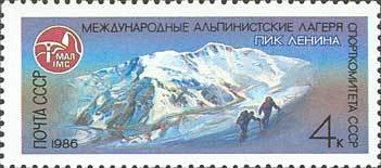 Visibility: public Image owner: none postage 9/5/1986 4k multi dt=International Mountaineers' Camps of USSR d=Lenin Peak, Pamir unwmk perf=11.75 Crops No visible images cropped from this one. Measurements Resolution is unknown. Source Source name: Colnect File URL: http://i.colnect.net/b/592/142/Lenin-Peak-7134-m-Pamir.jpg Uploaded September 8, 2014, 8:52 pm by Stan Shebs |