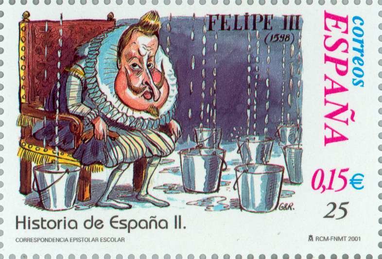 Visibility: public Image owner: none postage 10/19/2001 25pta|0,15€ multi issue=School Stamps - Spanish History d=Accession of Philip III 1598 unwmk perf=12.75x12.5 Crops No visible images cropped from this one. Measurements Resolution is unknown. Source Source name: Colnect File URL: http://i.colnect.net/b/182/722/Accession-of-Philip-III-1598.jpg Uploaded July 17, 2013, 4:01 pm by Stan Shebs |