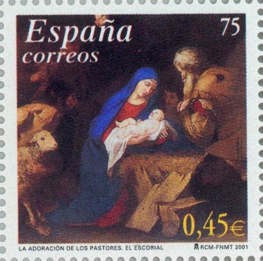Visibility: public Image owner: none postage 11/8/2001 75(p)|0,45€ multi issue=Christmas 2001 d=The Adoration of the Shepherds by Jusepe de Ribera unwmk Crops No visible images cropped from this one. Measurements Resolution is unknown. Source Source name: Colnect File URL: http://i.colnect.net/b/182/730/Adoration-of-the-Shepherds-by-José-de-Ribera.jpg Uploaded September 8, 2014, 9:26 pm by Stan Shebs |