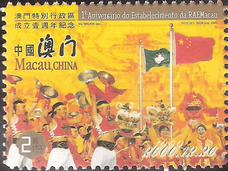 Visibility: public Image owner: none postage 12/20/2000 2p multi issue=1st Anniversary of Macau as Special Administrative Region of People's Republic of China unwmk Crops No visible images cropped from this one. Measurements Resolution is unknown. Source Source name: Colnect File URL: http://i.colnect.net/b/1101/856/Anniversary.jpg Uploaded September 8, 2014, 10:22 pm by Stan Shebs |