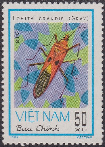 Visibility: public Image owner: none postage 9/25/1982 50xu multi dt=insects (1982 Vietnam) d=Lohita grandis unwmk Crops No visible images cropped from this one. Measurements Resolution is unknown. Source Source name: Colnect File URL: http://i.colnect.net/b/1426/306/Giant-Red-Bug-Lohita-grandis.jpg Uploaded September 9, 2014, 12:00 am by Stan Shebs |