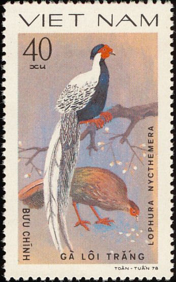 Visibility: public Image owner: none postage 6/1/1979 40xu multi issue=pheasants 1979 dt=pheasants (1979 Vietnam) d=Lophura nycthemera unwmk perf=12.25x12 Crops No visible images cropped from this one. Measurements Resolution is unknown. Source Source name: Colnect File URL: http://i.colnect.net/b/1613/201/Silver-Pheasant-Lophura-nycthemera.jpg Uploaded September 9, 2014, 12:07 am by Stan Shebs |