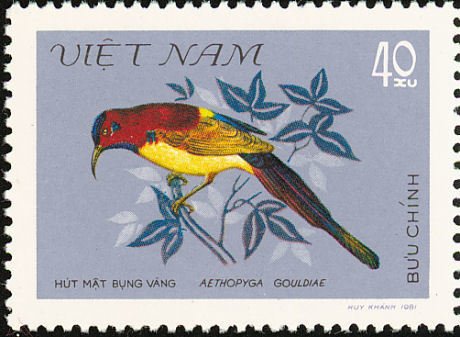 Visibility: public Image owner: none postage 8/5/1981 40xu multi dt=sunbirds (1981) d=Aethopyga gouldiae (1981) unwmk Crops No visible images cropped from this one. Measurements Resolution is unknown. Source Source name: Colnect File URL: http://i.colnect.net/b/1505/367/Gould-s-Sunbird-Aethopyga-gouldiae.jpg Uploaded September 9, 2014, 12:08 am by Stan Shebs |