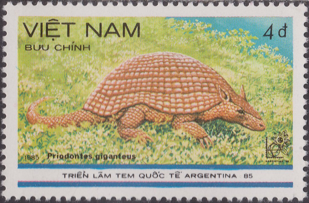 Visibility: public Image owner: none postage 7/5/1985 4d multi issue=Argentina '85 dt=animals (1985 Vietnam) d=Priodontes giganteus (1985 Vietnam) unwmk perf=12.25x12.5 Crops No visible images cropped from this one. Measurements Resolution is unknown. Source Source name: Colnect File URL: http://i.colnect.net/b/1539/946/Giant-Armadillo-Priodontes-giganteus.jpg Uploaded September 9, 2014, 1:32 pm by Stan Shebs |
