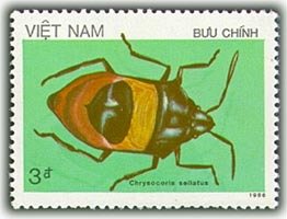 Visibility: public Image owner: none postage 6/30/1987 3d multi issue=Insects 1987 dt=insects (1987 Vietnam) d=Chrysocoris sellatus unwmk perf=12.75 Crops No visible images cropped from this one. Measurements Resolution is unknown. Source Source name: Colnect File URL: http://i.colnect.net/b/1631/630/Brown-Bug-Chrysocoris-sellatus.jpg Uploaded September 9, 2014, 1:35 pm by Stan Shebs |