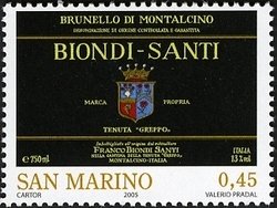 Visibility: public Image owner: none postage 8/26/2005 0,45(€) multi issue=Great Wines of Italy dt=labels of Italian wines d=Brunello di Montalcino Biondi-Santi unwmk Crops No visible images cropped from this one. Measurements Resolution is unknown. Source Source name: Colnect File URL: http://i.colnect.net/b/1007/833/Biondi---Santi.jpg Uploaded September 9, 2014, 1:54 pm by Stan Shebs |