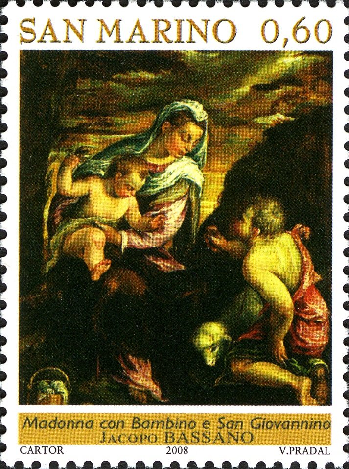 Visibility: public Image owner: none postage 2/26/2008 0,60(€) multi issue=Returned Masterpieces of Art d=Madonna with Child & St John - Bassano unwmk Crops No visible images cropped from this one. Measurements Resolution is unknown. Source Source name: Colnect File URL: http://i.colnect.net/images/b/712/537/Madonna-with-Child--amp--St-John---Bassano.jpg Uploaded September 9, 2014, 1:58 pm by Stan Shebs |