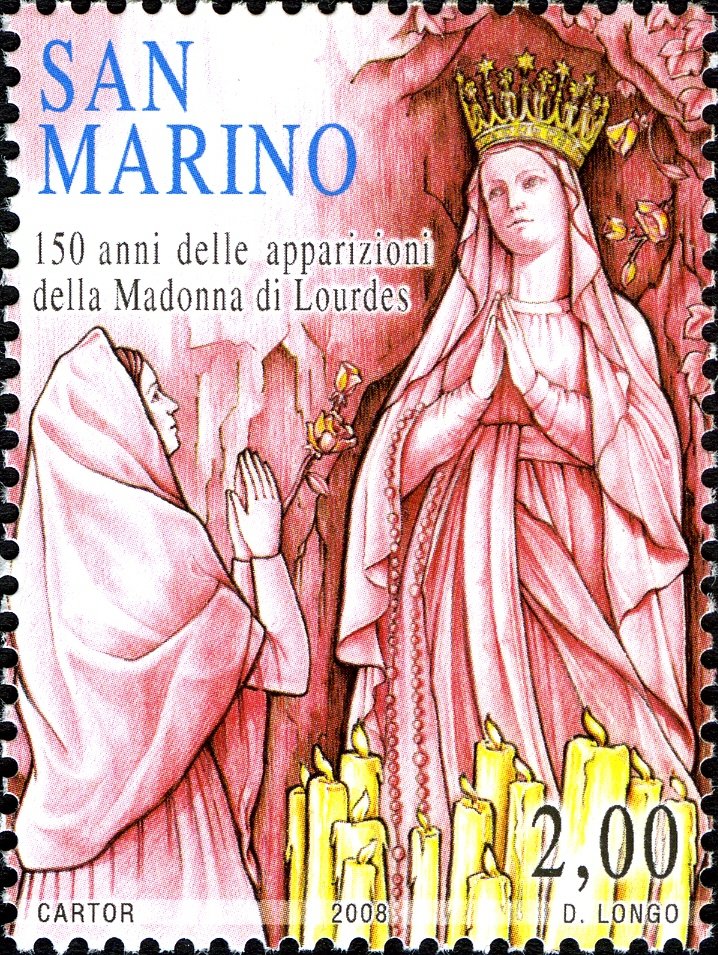 Visibility: public Image owner: none postage 4/8/2008 2,00(€) multi issue=150th Anniversary of the Apparitions of Our Lady of Lourdes unwmk Crops No visible images cropped from this one. Measurements Resolution is unknown. Source Source name: Colnect File URL: http://i.colnect.net/images/b/712/547/Our-Lady--s-apparitions-to-Bernadette.jpg Uploaded September 9, 2014, 1:59 pm by Stan Shebs |